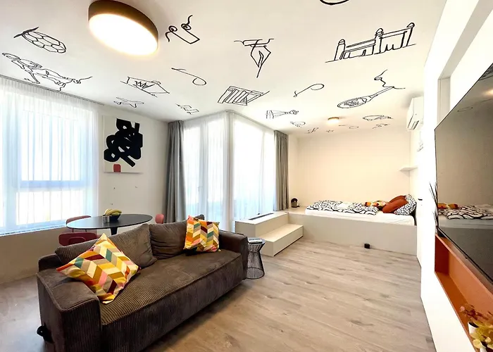 In der Ferienwohnung Peak At Danubius stehen Gästen ein Patio, ein Balkon und eine Sitzecke mit einer Klimaanlage und einer Waschmaschine zur Verfügung. Das Apartment verfügt über eine begehbare Dusche und eine getrennte Toilette, die Ihren Komfort erhöhen. Zudem finden Sie im Badezimmer einen Haartrockner und Badelaken.